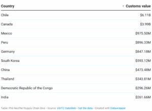 This week in supply chain and logistics news began with the Trump administration imposing a 50% tariff on all U.S. imports of copper. Additionally, Trump ordered a Section 301 investigation into Brazil, which allows the U.S. to take action against countries that violate trade agreements. Infios and S&S Activewear were awarded the “Top Supply Chain Project Winner” for their collaboration on warehouse automation and robotics. Lastly, Mark Morgan, an executive at Kinaxis, discussed Supply Orchestration to mitigate the impacts of tariffs.